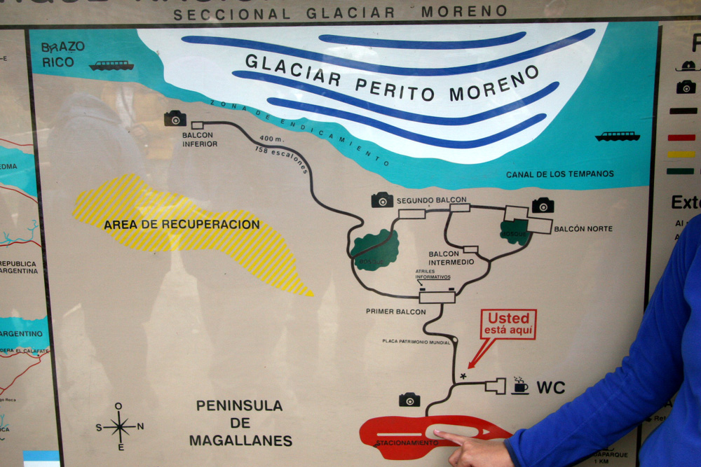 ペリトモレノ氷河の展望台略図